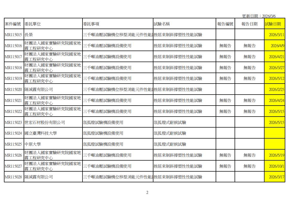 為提供查詢本中心之技術服務進度及報告書訊息,查詢時可就所持報告書編號查對,如須進一步確認者請洽本中心。